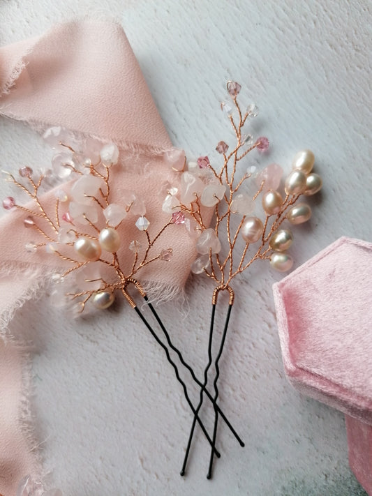 Enchanted Glass Hairpins Set of 3 in Rose Gold