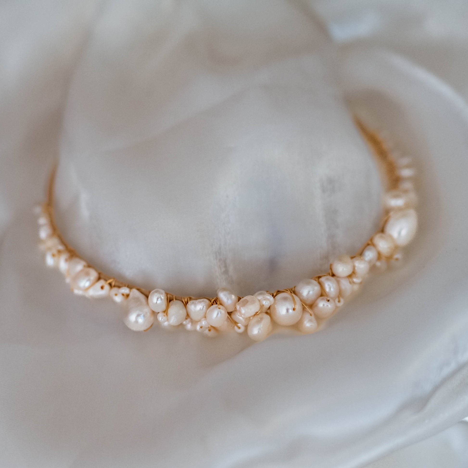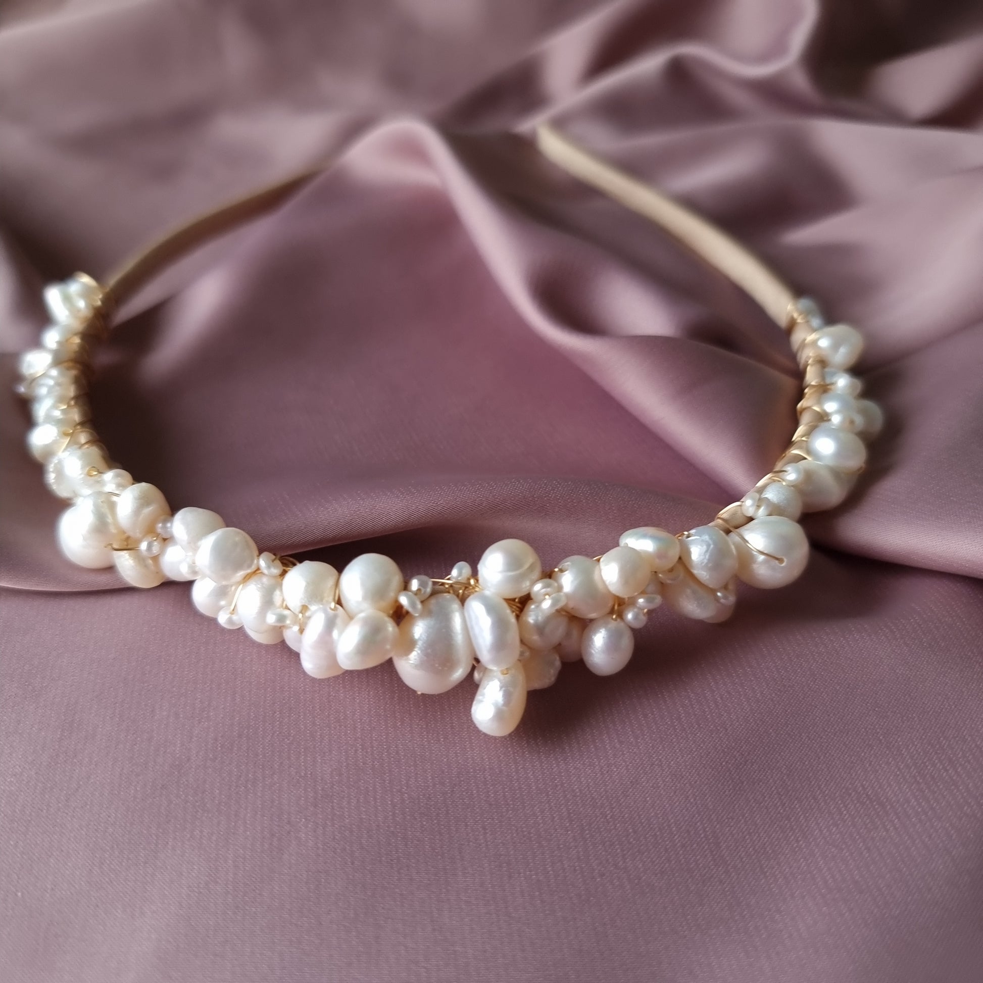 This Cascade Pearl Tiara features freshwater pearls set in a cascading design—perfect for classic-inspired brides.