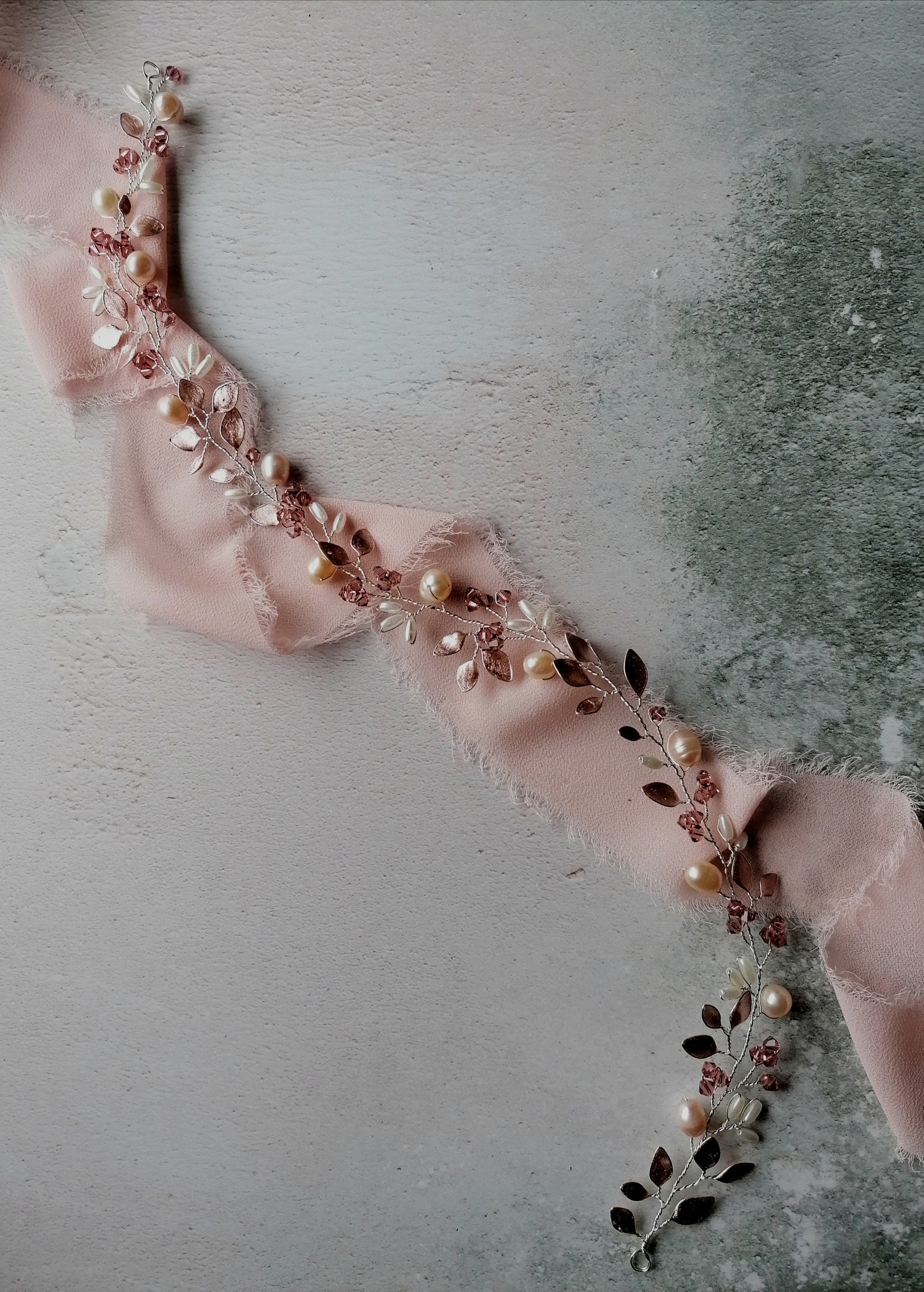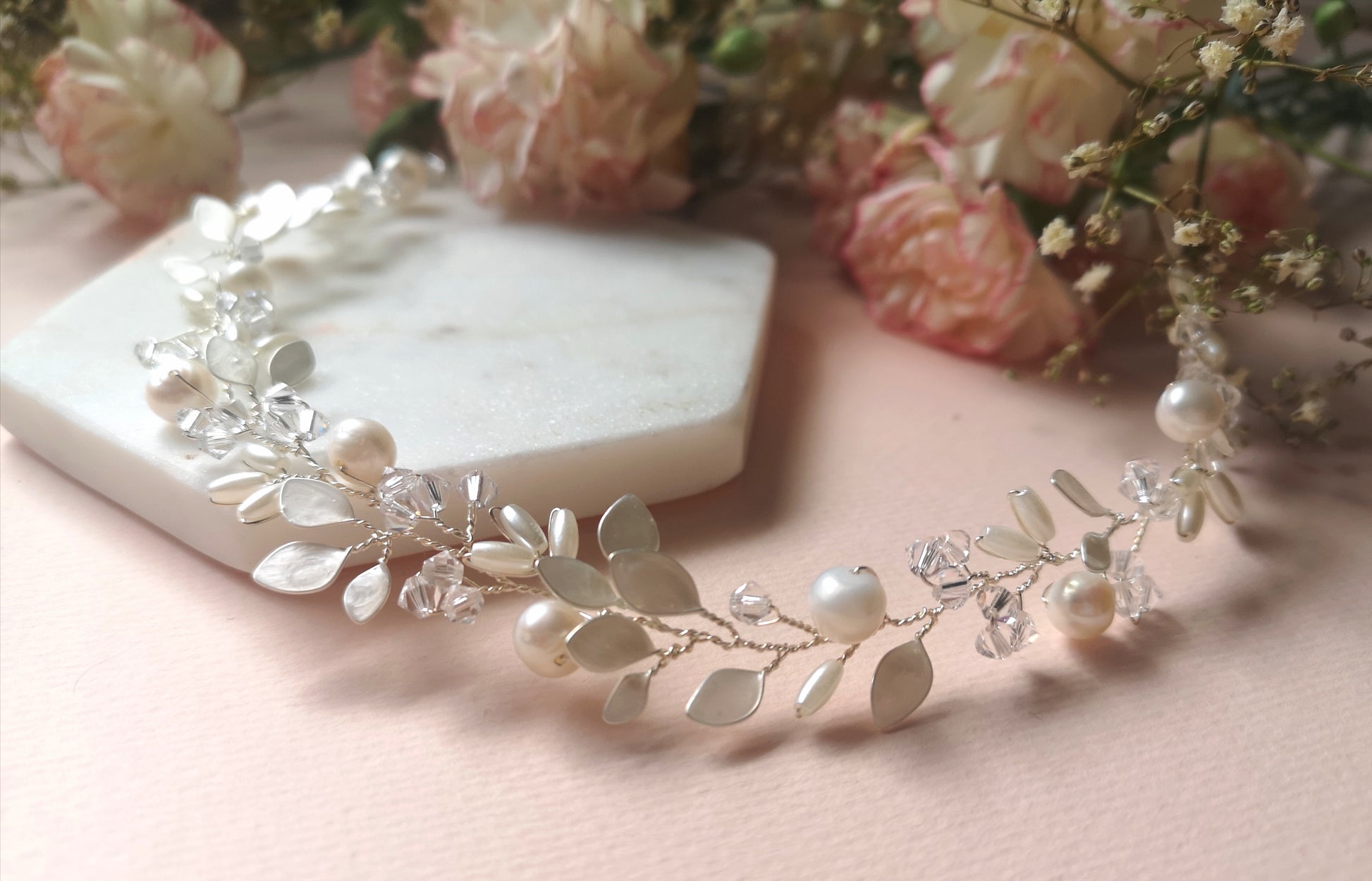- Set with two loops at either end of the vine so that the hairpiece can be pinned in place with hair grips.