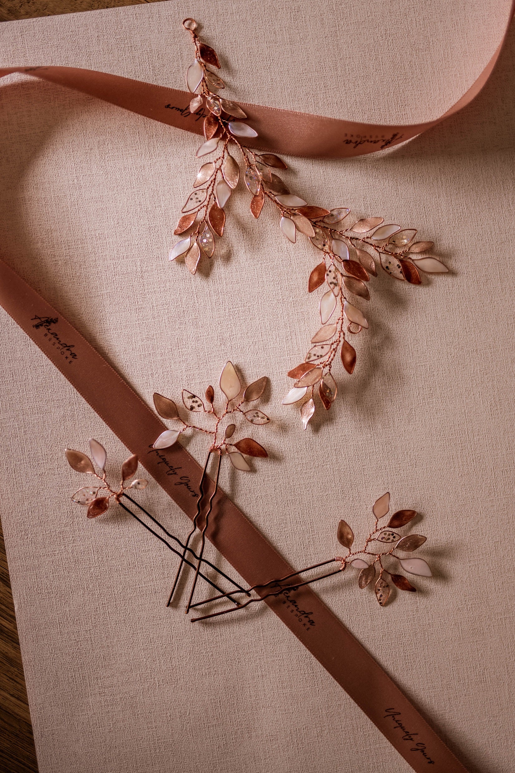 Enchanted Glass Hairpins Set of 3 in Rose Gold