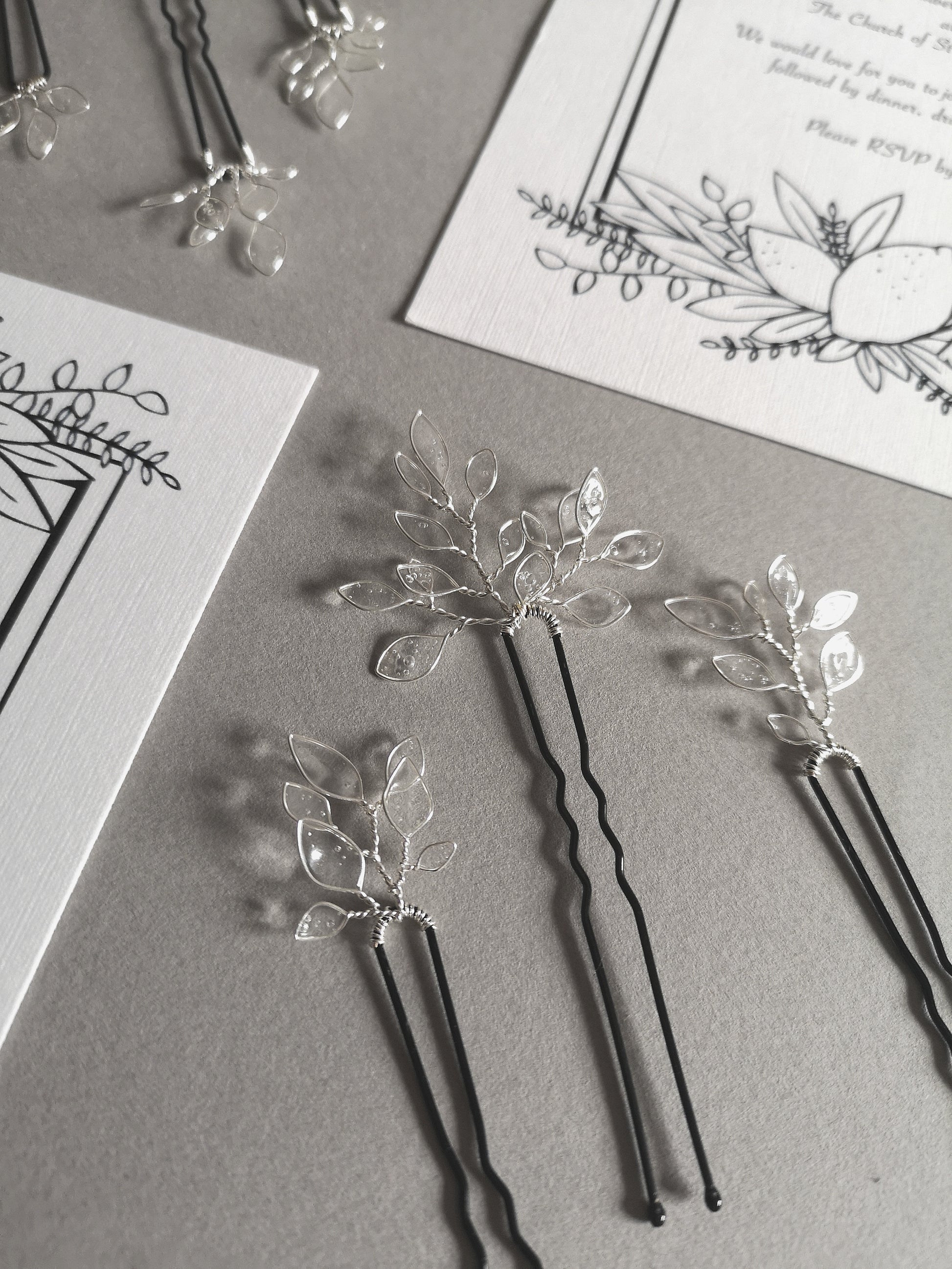 Enchanted Glass Hairpins Set of 7 in Silver