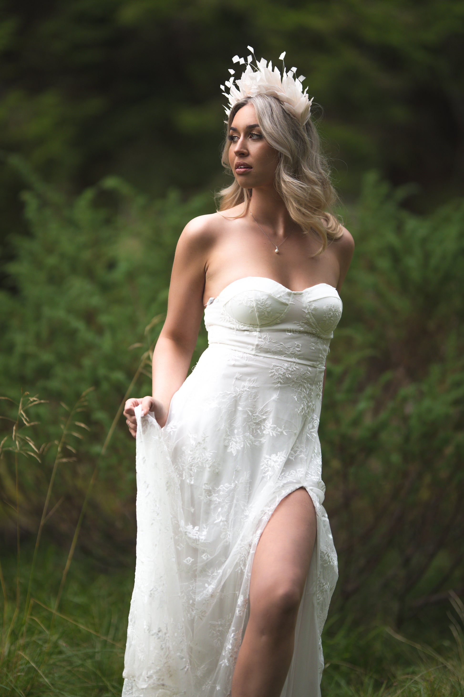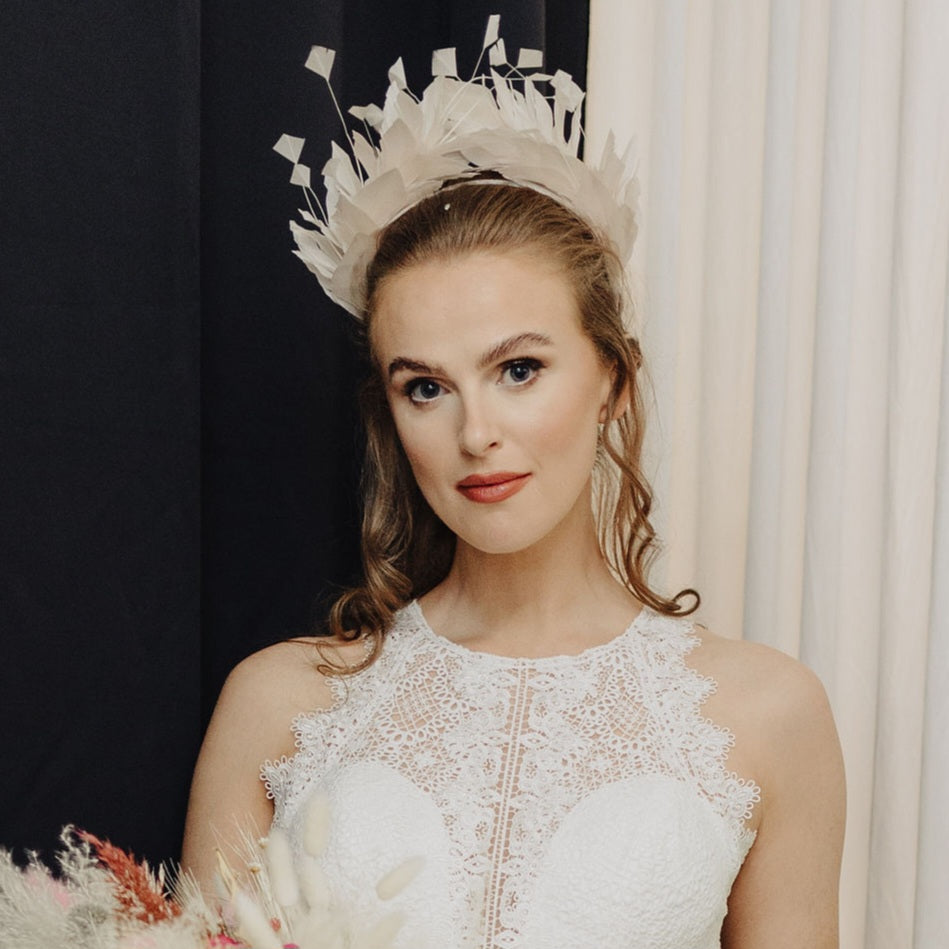 A stunning feathered crown, perfect for a bride who wants to make a regal statement!