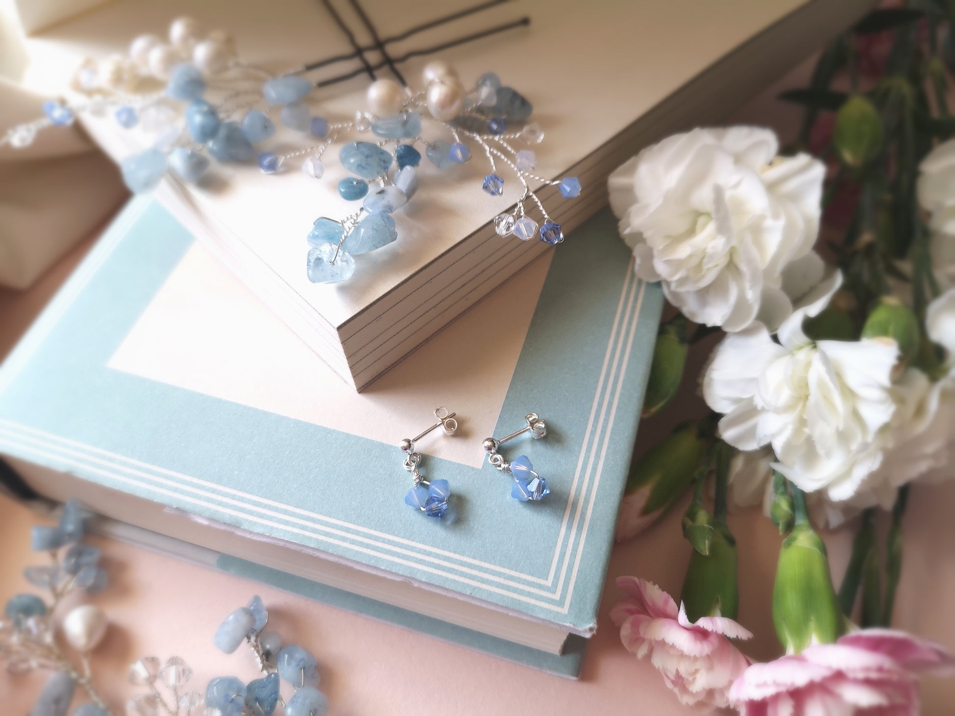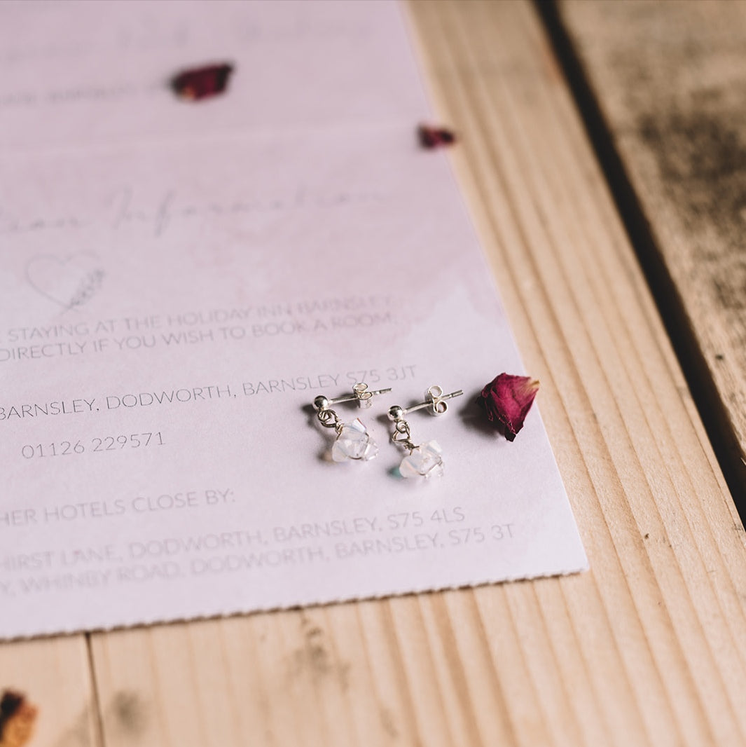 Set on Sterling Silver studs, these earrings are available in a choice of white opal, air blue opal or rose water opal. For custom crystal colour options please email us at alexandra.bespoke@gmail.com