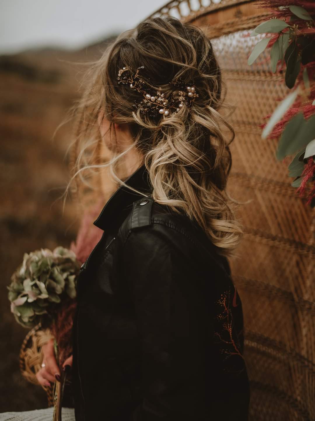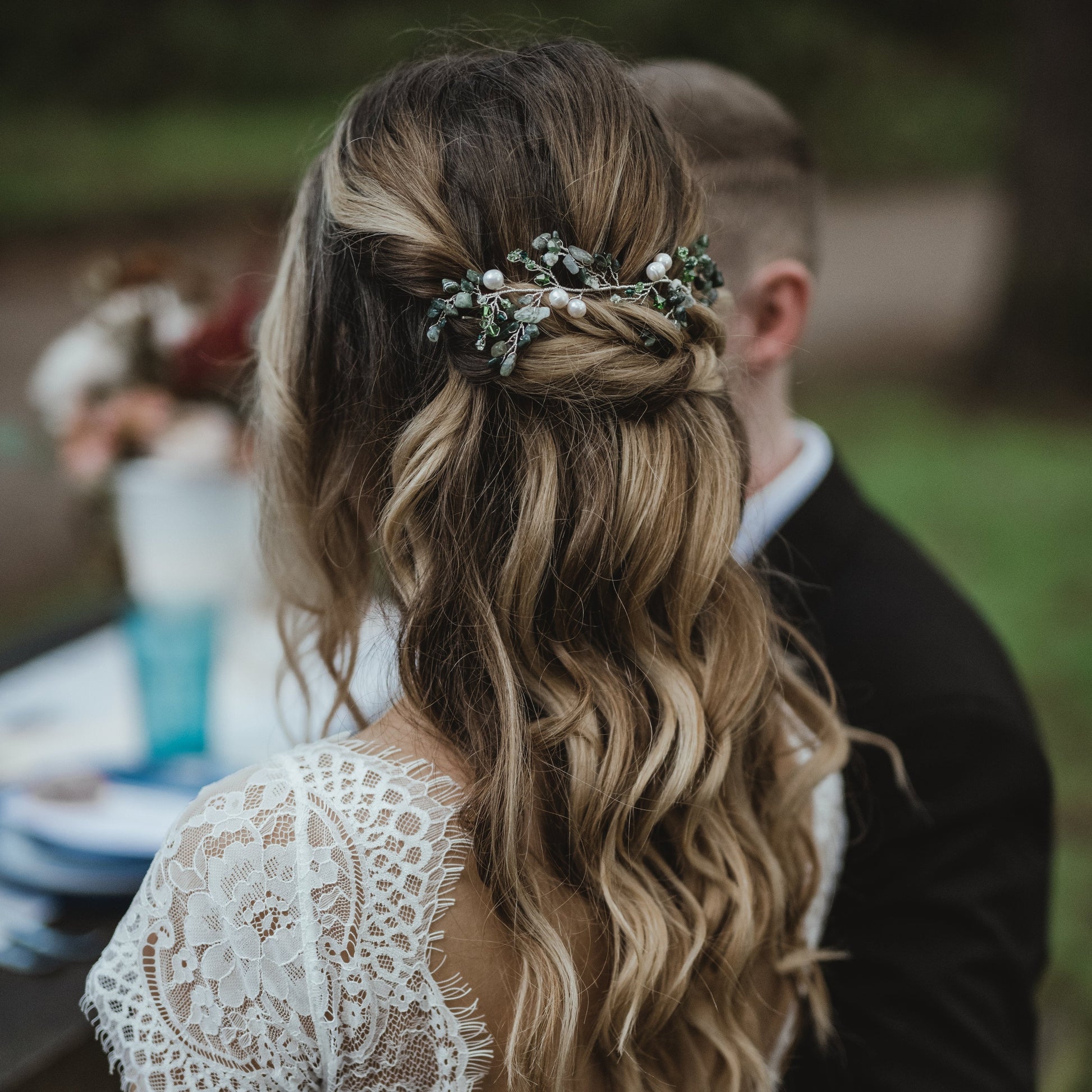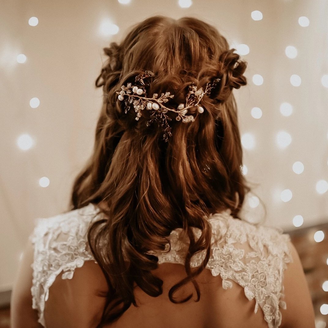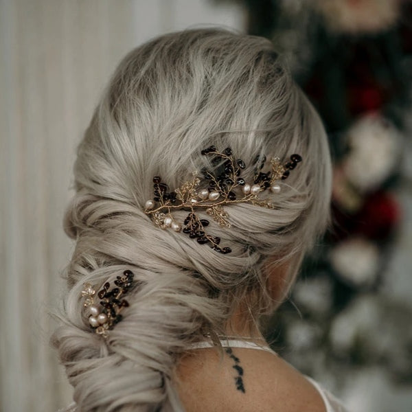 - Set with two loops at either end of the vine so that the hairpiece can be pinned in place with hair grips.